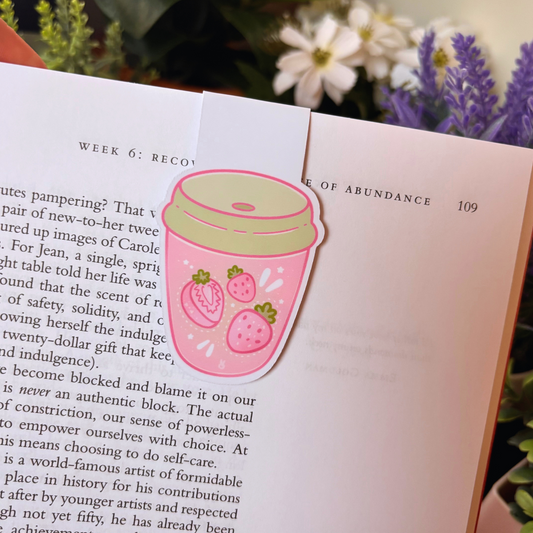Strawberry Matcha To Go Cup Magnetic Bookmark | Cute Pink Berry Themed Gift for Readers and Bookworms