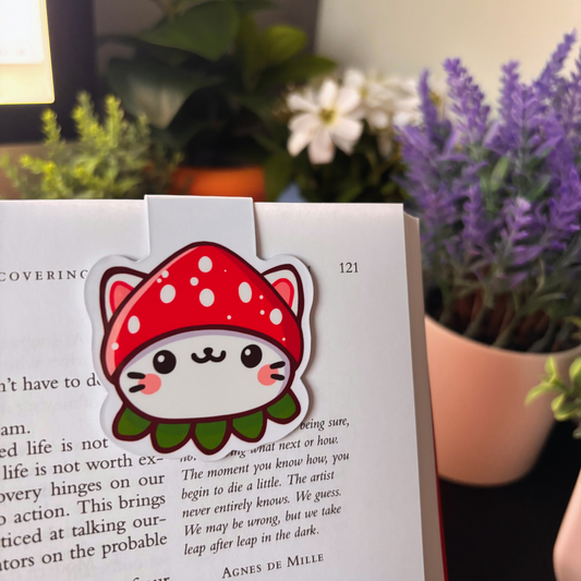 Cat Strawberry Hat Magnetic Bookmark | Cute Reader Bookworm Gift