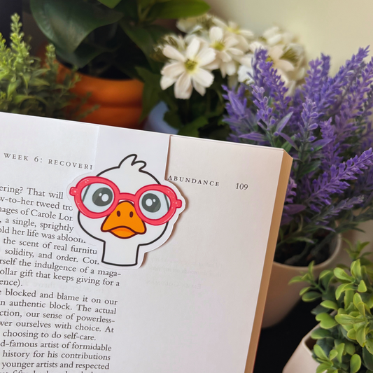 Goose With Pink Glasses Magnetic Bookmark | Silly Reader Gift for Bookworms