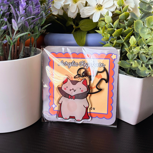 Limited Edition Count Meowcula Acrylic Keychain | Bat Clasp Accessory | Halloween Vampire Gift