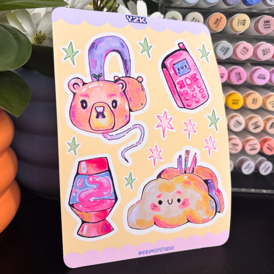 Y2K Inspired Sticker Sheet Sketchbook Art | Hand Drawn Decor For Journaling and Planner
