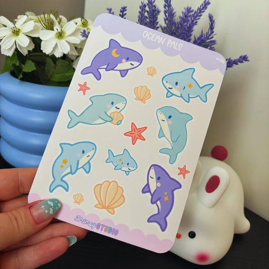 Ocean Pals Planner Sticker Sheet #016 | Cute Sharks, Whales, Shells & Starfish | Kawaii Ocean Animal Stickers by Drimsy Studio